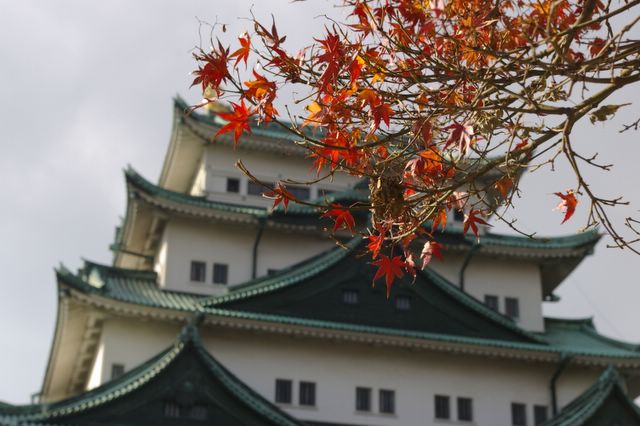 Nagoya Castle with maple