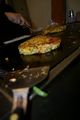Okonomiyake are rich omelettes made with vegetables (or fish and meat) at your table. You order the ingredients and then mix them up and cook them on the big hot plate in front of you. After a few minutes and few deft flips with the supplied spatula, you eat!