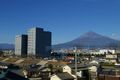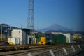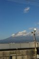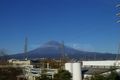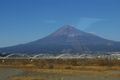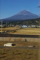 Fuji was first shrouded in cloud, but as the train carried on, I got a clear view of a summit strangely clear of snow.