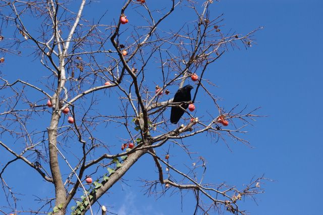 Crow on persimmon tree