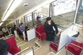 On the edge of the platform are red dots. When the train stops, the driver opens the door and the red dot for his type of train is under his nose. And check out the leg room.