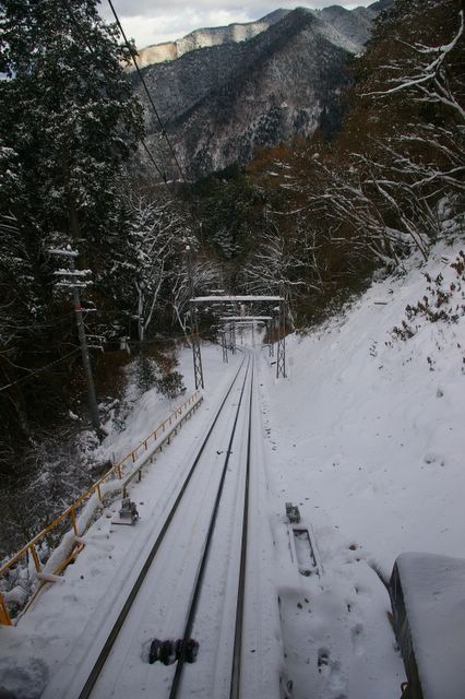 Looking down cable car
