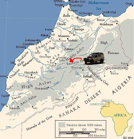 We reach the tiny village of Rich and top up with fuel. From here we leave the tarmac behind, and now Elsa is leading. We're heading for the High Atlas mountains.