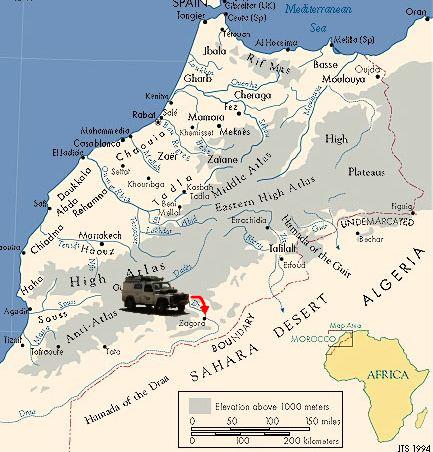 After dinner I enter the coordinates of the desert piste from Tagounite to Rissani into my GPS. Sam's book has full details of the piste, including coordinates, landmarks, and route descriptions. We're all set for our trip out into the Sahara.