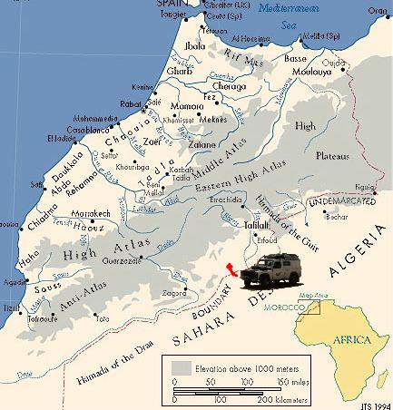 Almost immediately two headlights shine out and we hear the engine being stretched to its limit. The vehicle starts off towards the south, and we watch it quickly disappear behind a hill. The sound becomes a low rumble, and it fades off into the far south, towards the Algerian border.