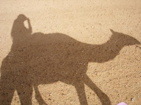 After lunch it was back on the camels and the Jeep drove off. We plodded on at the camel's steady pace. A couple of hours later it was agony again. Plus my camel was slow. Our guide gave me his stick to whack the camel when he was lagging behind. Occasionally my ship of the desert would have to break into a trot.