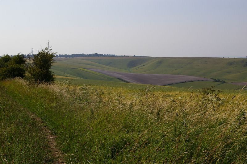 Finding water up on chalk hills is a problem, and on a day like this it was good to see that some drinking water taps and troughs for horses had been installed along the way. I approached one and prepared to empty my water bottle over my head before refilling it with cold clear refreshing liquid. Then I noticed the tap wasn't connected. Ah. Lesson learnt.