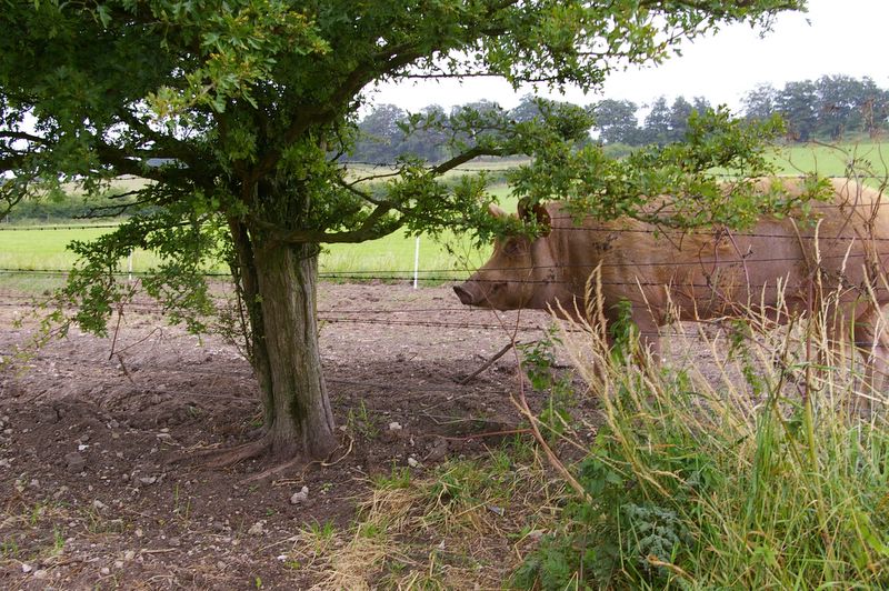 After a friendly greeting (from Mrs Reid as well as from her dogs, cows, pigs, and horses) we relaxed in our room. For dinner Caroline had the farm's pork and enjoyed crunching into the crackling. I had a veggie burger fresh from a supermarket but did at least have potatoes and carrots straight from the farm. Mrs Reid said she couldn't really grow soya round here. We chatted to a couple who were walking the Ridgeway in the other direction and were the only other people staying that night. Dessert was a summer fruit pudding.
