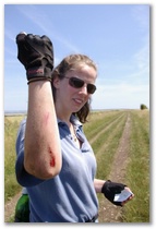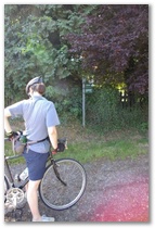 From here its almost all off-road for over sixty miles. The tracks are well-signposted and easy to follow. We found a shady spot for an early lunch snack and watched the dancing butterflies. The way was quiet, with only a few walkers and one or two cyclists. The surface was mostly dirt and gravel, with occasional solid surfaces. We carried on, and then as we rode between fields on a track slightly rutted by motor vehicles, I heard a yelp behind me. Caroline had hit a lump, wobbled, and fallen off. Nothing serious, just skinned her elbow.