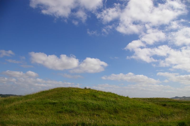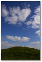 A hundred yards down a farm track was a ford - I splashed through it and up the steep bank on the other side. The way continued between hedges until I reached open ground and the neolithic site of Windmill Hill. Its another ditch and bank enclosure with several round barrows. I had the place to myself.